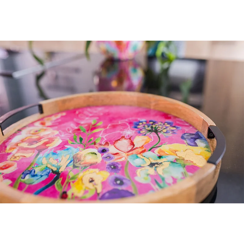 Haal de sprankelende energie van een zomers festival in huis met het een dienblad uit de categorie Designed by Lammie. Dit unieke ontwerp van Lammie straalt levendigheid en optimisme uit. De combinatie van een intense fuchsiakleur en een explosie van bloemen maakt het een echte eyecatcher. De gedurfde kleuren zorgen voor een speels accent in elk interieur.
