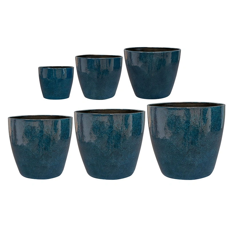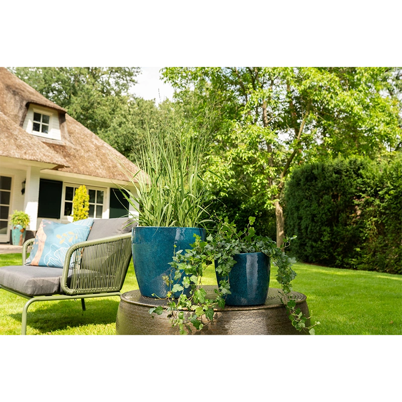 Pot Alisa D49 H46 ocean is een stijlvolle set plantenpotten in een luxe oceaankleur met matte afwerking. Perfect voor binnen en buiten, ideaal voor een rustgevende en moderne uitstraling.
