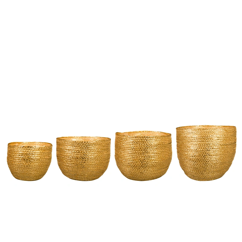 Met de Pot Dorieke D33 H25 goud – Set van 4 geef je je ruimte een chique en verfijnde uitstraling. De goudkleurige afwerking voegt warmte en glamour toe, perfect voor het tonen van je mooiste planten of bloemen.