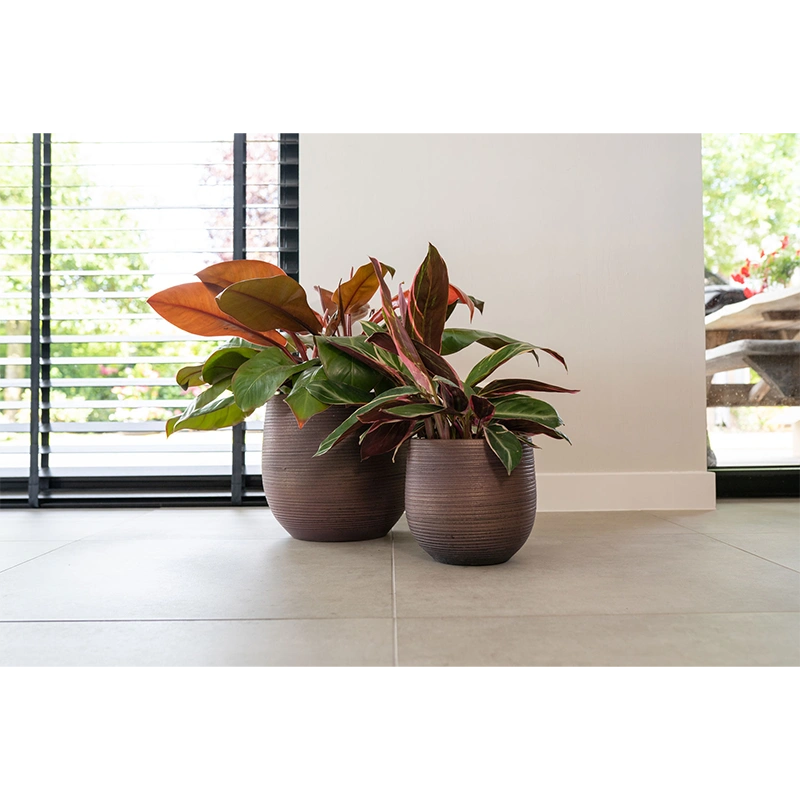 Kijk eens naar deze stijlvolle pot met mondaine uitstraling. Het vrijzinnige streeppatroon brengt kalmte met een knipoog naar sjiek. De binnenkant is goudkleurig. Pottenbakkers in Portugal maken deze serie van TS Collection nog traditioneel gemaakt. Dat gebeurt op draaiplateaus, met de handen. Vervolgens wordt de textuur aan de buitenkant met een speciale tool aangebracht. Daarna wordt de pot gebakken en vervolgens, ook handmatig, gespoten in de juiste kleur. Er is keuze uit frisse, flitsende kleuren volgens de laatste trends.