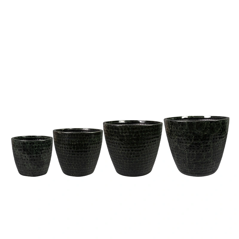 De Roan range bestaat uit verschillende kleuren metalen bloempotten voor buiten. Met zijn eenvoudige tapse vormgeving past hij bij iedere plant. Prachtige handgemaakte planters met ambachtelijke hamering en high-gloss epoxy toplaag. Verkrijgbaar in de kleuren Black, Ocean en Forest. De maatvoering loopt van een diameter van 22 centimeter tot 40 centimeter. Er zijn in totaal vier maten die supergeschikt zijn voor onder de overkapping en op het terras. Deze metalen potten zijn voorzien van een waterproof coating aan de binnenzijde die het metaal beschermt. Onderin de pot is een drainagesysteem verwerkt zodat overtollig water kan weglopen, en de plant altijd een klein voorraadje water heeft voor dorstige dagen. Een slimme, chique planter van het merk TS Collection.
