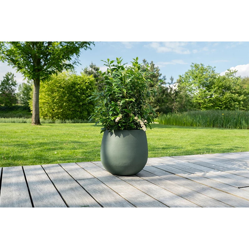 De Pot Stijn D36 H34 matgroen straalt rust en elegantie uit met zijn matte afwerking en natuurlijke kleur. Perfect voor wie een stijlvolle en tijdloze pottencombinatie zoekt.