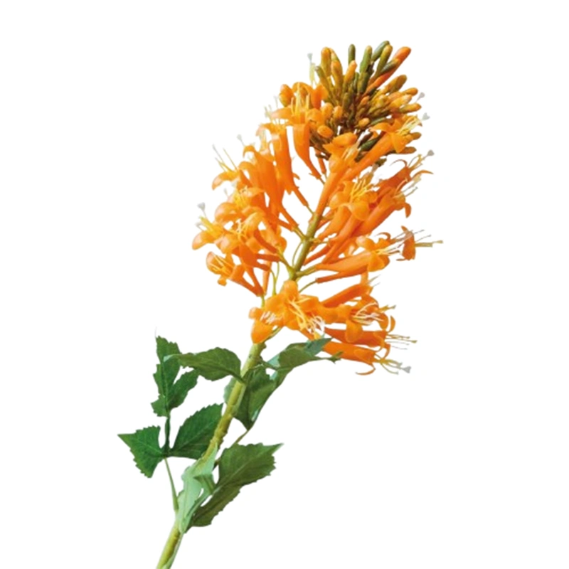 De Zijdebloem Kniphofia 82cm is met zorg ontworpen en gemaakt van hoogwaardige materialen. De lange steel en de karakteristieke bloei in fakkelvorm geven de bloem een realistische uitstraling. De oranje tint verloopt subtiel naar geel en zorgt voor een speels kleurverloop. De flexibele steel maakt het eenvoudig om de bloem te schikken in boeketten of solo in een smalle vaas te presenteren.